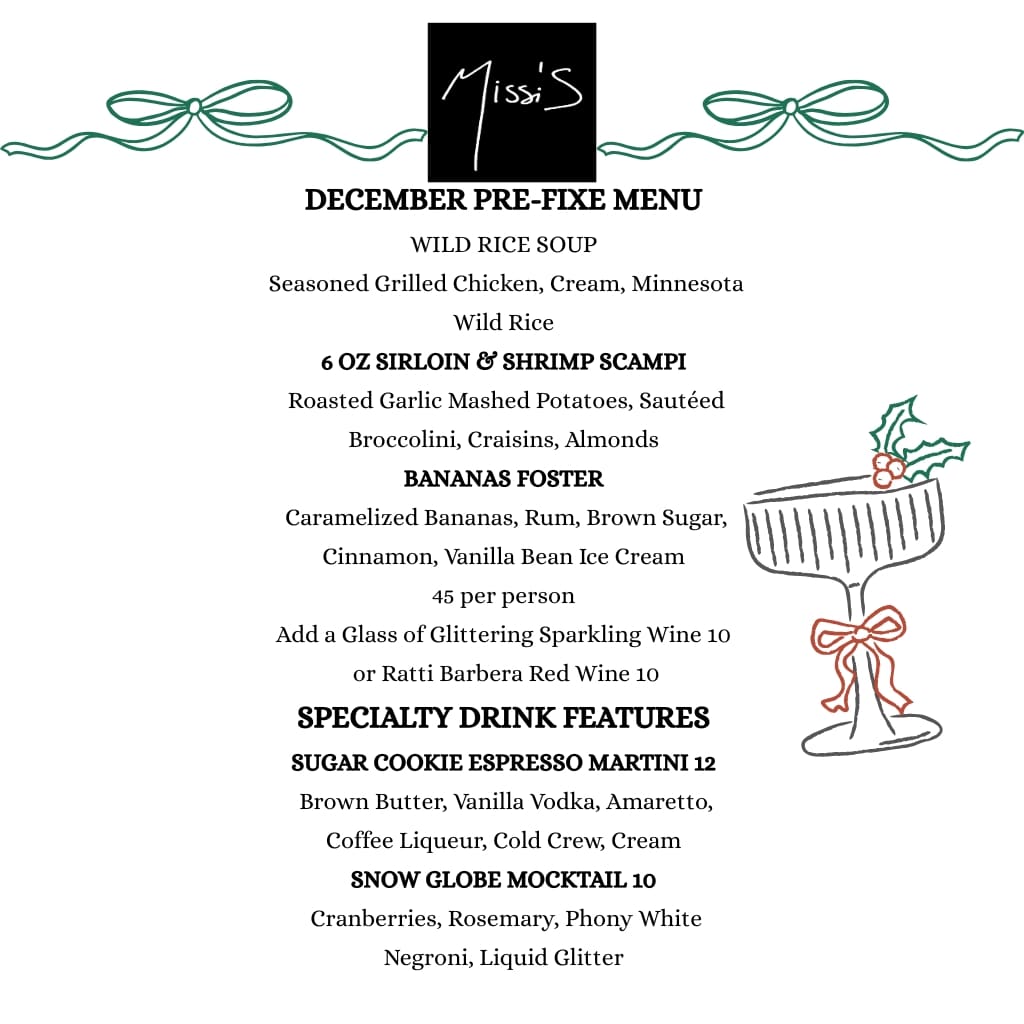 Midweek call for wine lovers! Join us for Wine Down Wednesday at Missi’s! Enjoy half off select bottles of wine every Wednesday—perfect for a relaxing night out.